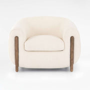 Add a touch of modern sophistication and comfort to your home with this cream upholstered accent chair, featuring a sleek curved silhouette and stylish wooden leg detailing. Designed for both elegance and everyday comfort, this designer armchair offers plush cushioning and a soft textured fabric that complements any interior. For Customize Contact Us.